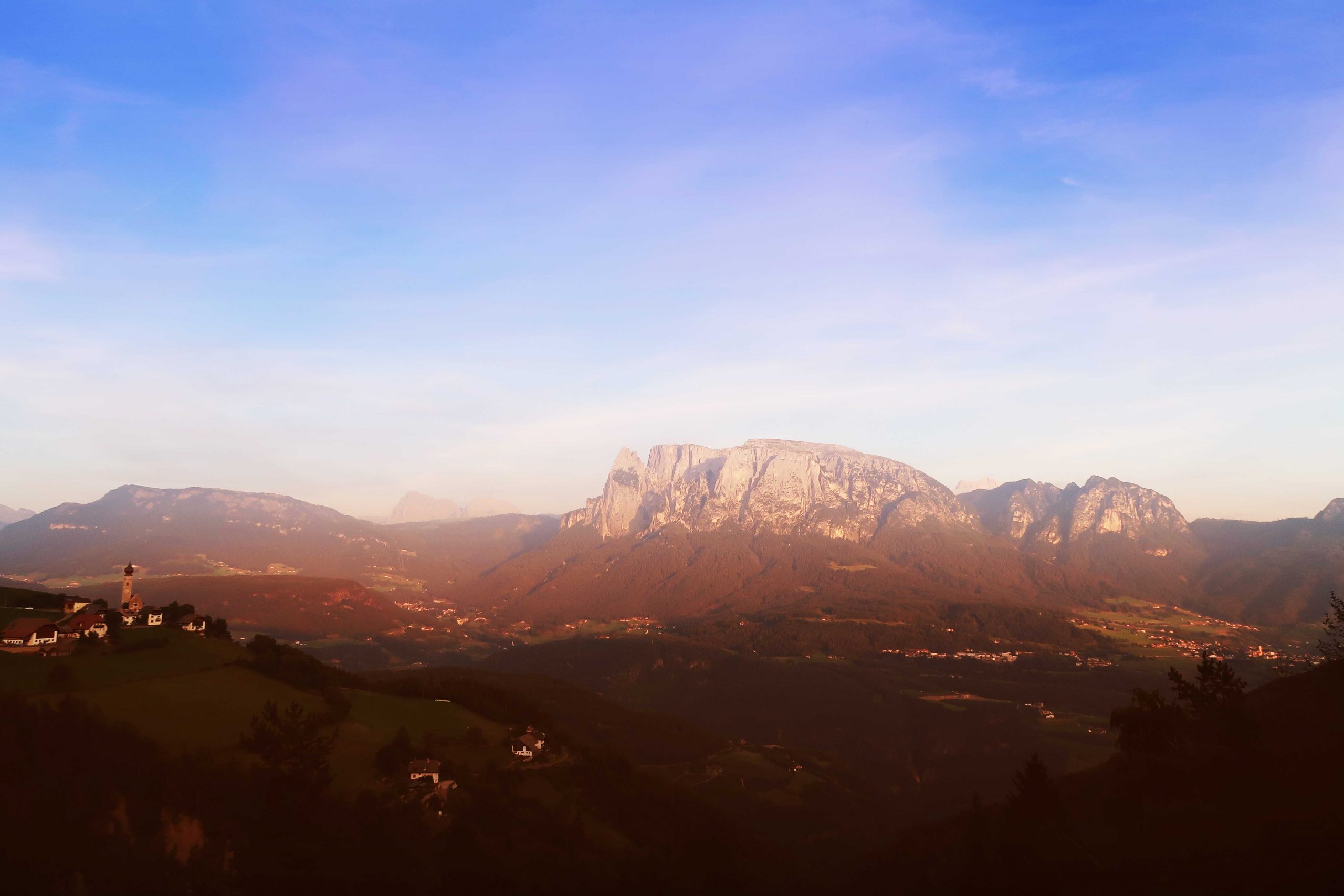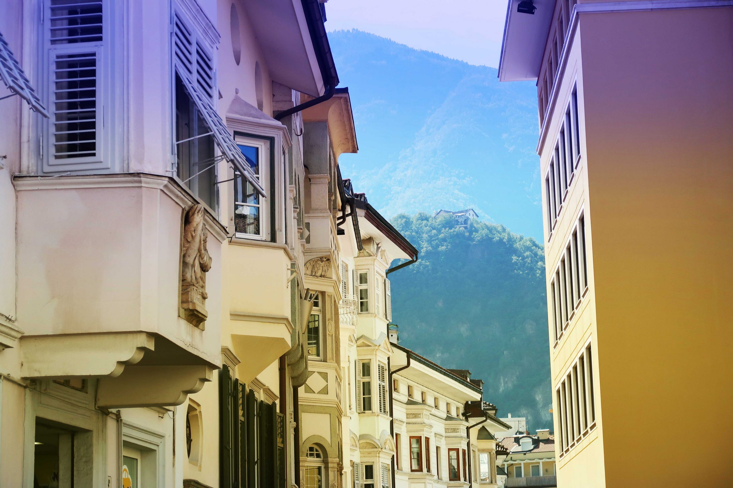 Från bergsbyn Collalbo hoppade vi på det historiska tåget från Klobenstein station för att få se de vackra vyerna över Renon/Ritten, Renon på italienska, Ritten på tyska. Lite förvirrande när en är i en tvåspråkig region, vissa föredrar italienskan, vissa tyskan. Här skulle jag säga att det är mer tyska än italienska som gäller. När vi senare kommer komma neråt landet kommer det att förändras. Det historiska tåget från 1907 (ja, alltså inte själva tåget utan rälsen) tog oss mellan Klobenstein/Collalbo och Oberbozen/Soprabolzano och tog ca 20 min i en blygsam fart av 30 km/h – perfekt om man vill fotografera det vackra landskapet utanför tågfönstren! Men äventyret slutade inte här – när vi väl kommit fram till Oberbozen (1221 möh) tog vi linbanan ner till stadskärnan av Bozen/Bolzano. Personligen föredrar att kalla staden Bolzano. Klingar liksom bättre på något vis. Linbanan bör ingen missa FANTASTISK utsikt över dolomiternas höga bergstoppar, böndernas grönskande fält av vindruvor, men framförallt – alla hundratals kyrktorn som tornar upp sig över staden. Det är vackert. Så väldigt vackert.