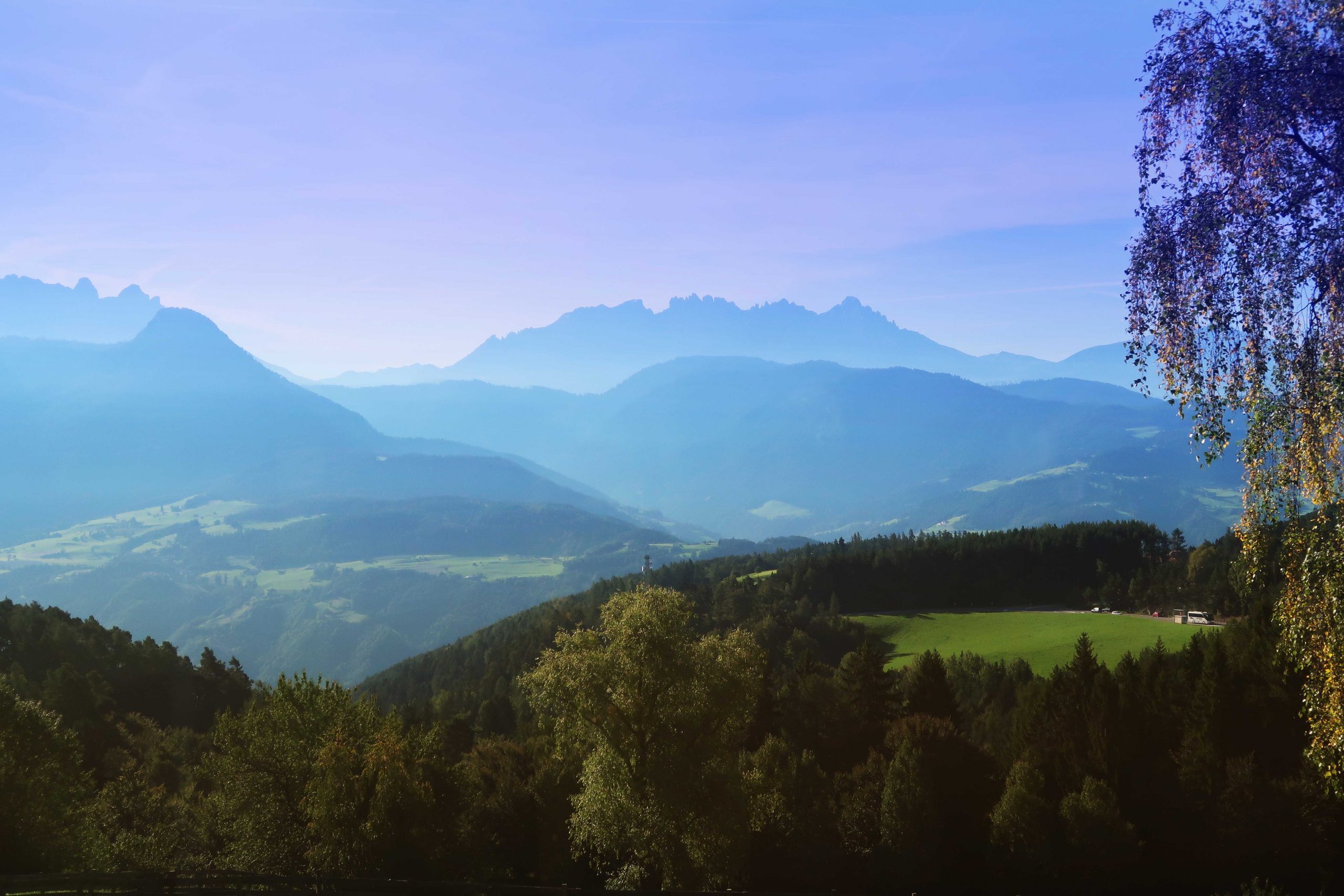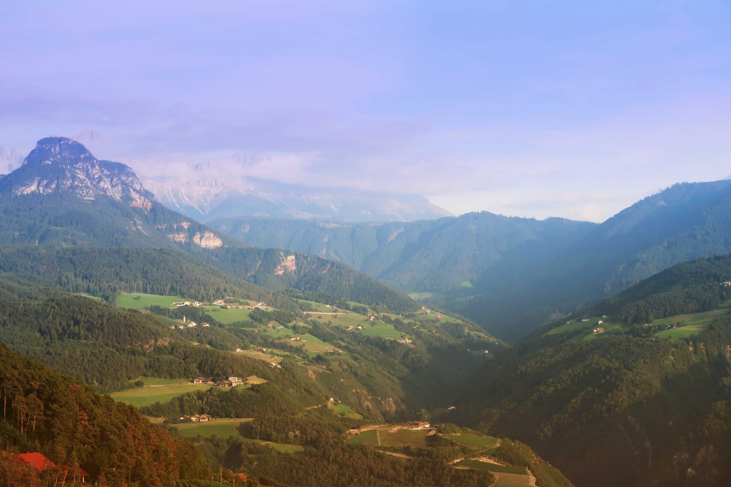 In English: We begun our adventure in Oslo, Gardemoen and from Munich we took the train through Bayern, Brenner Pass in Austria and finally we reached Bolzano/Bozen in South Tyrol. Norway – Germany – Austria and Italy on one day! We spent two night in the mountain village Collalbo (Klobenstein på tyska) at 1156 metres above sea level (masl). Stunning view over the Alps.