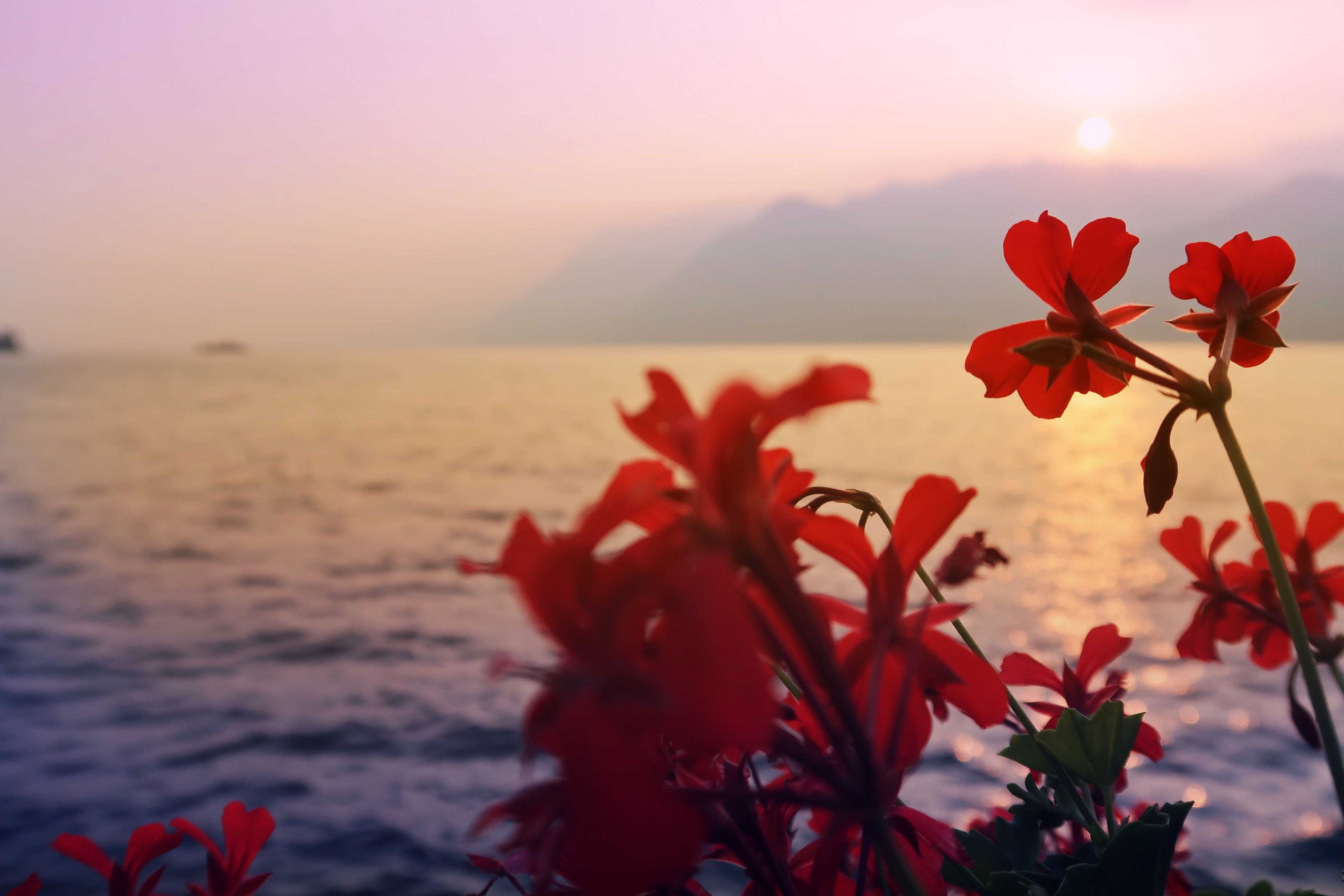 In English: With the cable car (funicolare) we reached a beautiful view at 1364 metres over sea level at Passo Mendola (border between South Tyrol and Trentino) – that surprised me that it was not only a viewing point. It was a cute village! After being stunned by the magical view…over the clouds we continued traveling to Mezzocorona where we jumped on the train to Malé for Italian 3-course lunch. One hour with miles and miles of apple orchards through Val di Sole & Val di Non – and of course we was served a delicious apple sorbet as dessert. With bus we traveled over the Brenta-Dolomites and all the popular skiing resorts – at dusk we reached our final destination for the day – Malcesine by Lake Garda.