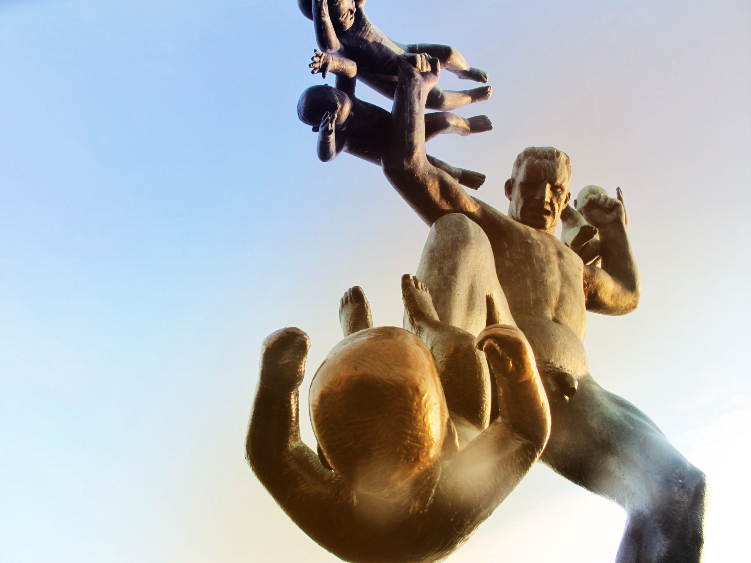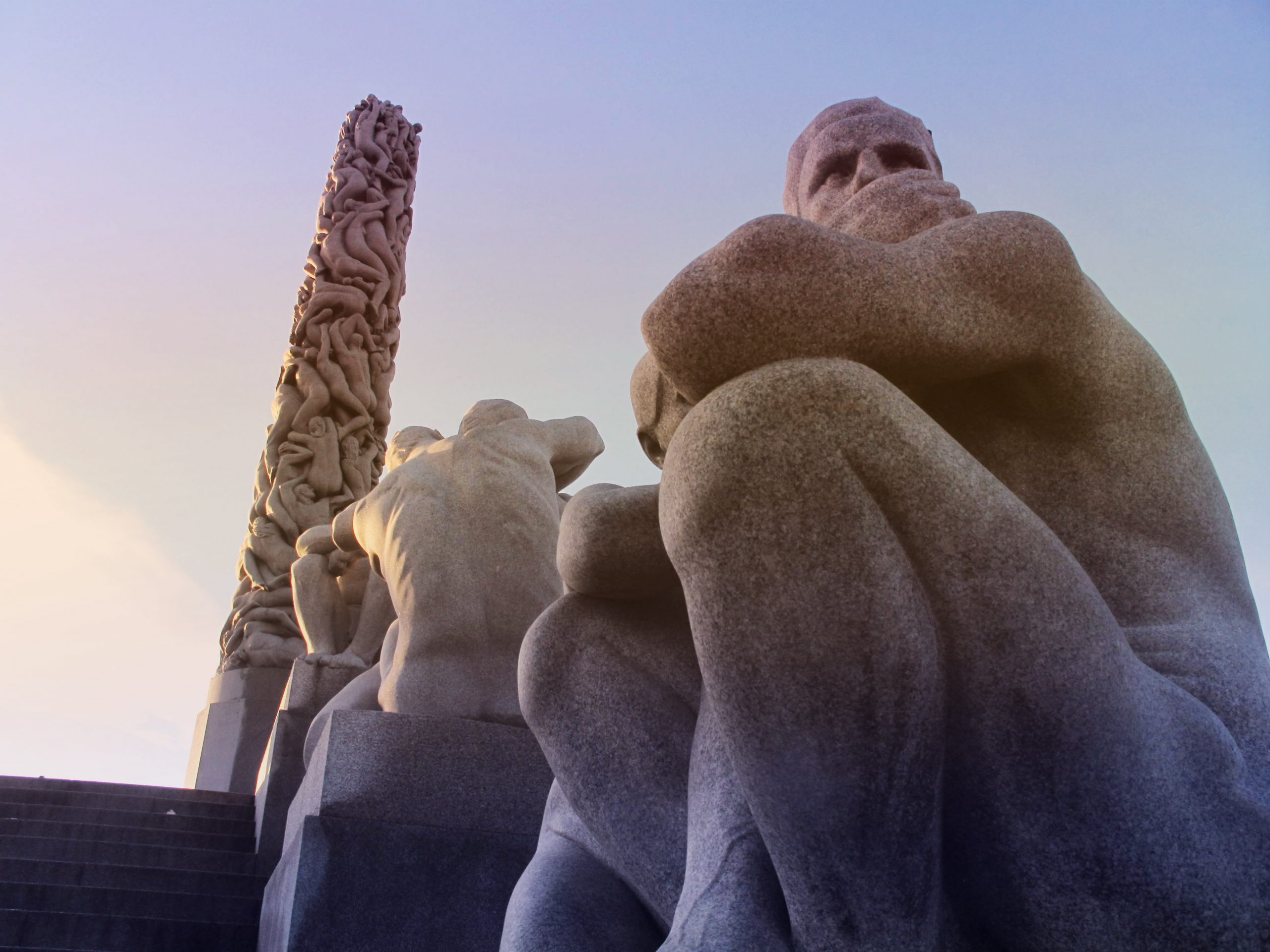 GUSTAV VIGELAND (1869 – 1943) är en av Norges mer betydande konstnärer, kanske framförallt i Oslo där hans verk finns placerade på flera platser. Huvudsakligen ägnade Gustav sig åt att skapa realistiska människokroppar i naturlig storlek (eller större). Dessa finns att beskåda i den del av Frognerparken som kallas Vigelandsparken där inte mindre än 212 olika skulpturer finns att beskåda. Det mest hänförande verket är parkens huvudpunkt, Monolitten, som är en granitpelare med 121 människor hopslingrade och uthuggna av ett och samma granitblock. Otroligt imponerande!