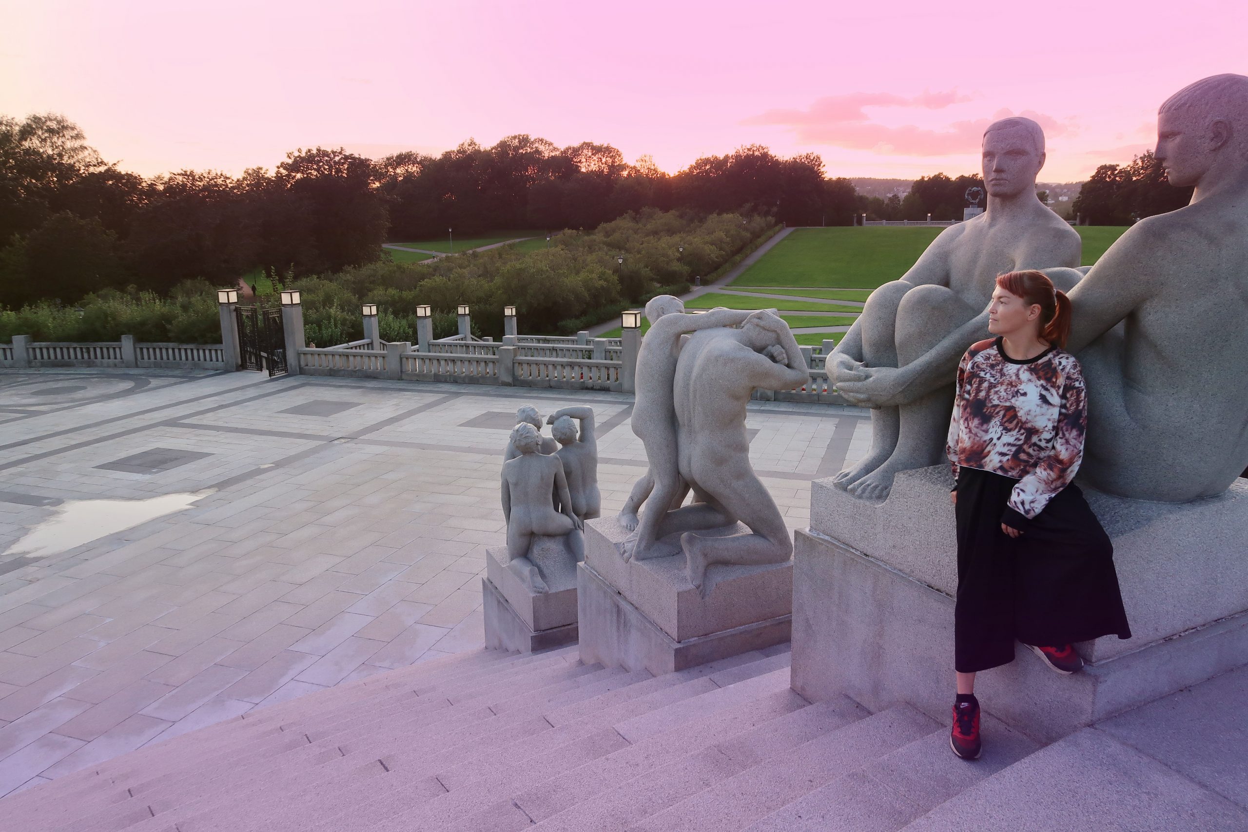 WHERE & WHEN. Parken ligger i stadsdelen Frogner och gränsar till Majorstuen. Det går både buss och trikk (spårvagn) som stannar alldeles utanför eller ta valfri tunnelbana till Majorstuen T och gå en promenad på ca 5-10 minuter. Parken är alltid öppen, dygnet runt och är helt gratis att besöka. Jag rekommenderar att gå dit vid solnedgång då jag tycker att skulpturerna kommer till sin fulla rätt. Förutom skulpturparken finns också ett museum tillägnad hans verk. För mer information om parken och museet: https://vigeland.museum.no/